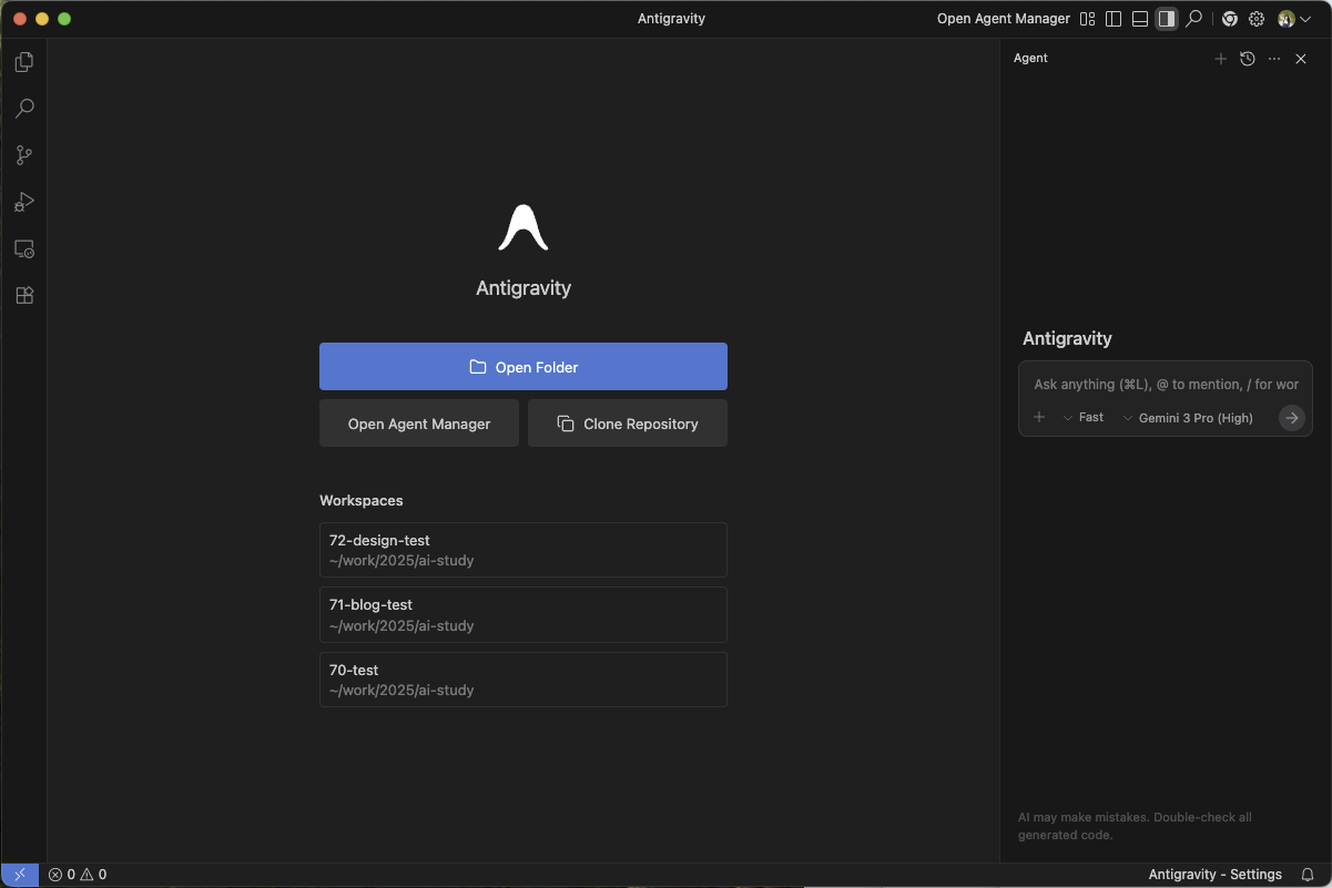 Antigravity 사용해보기