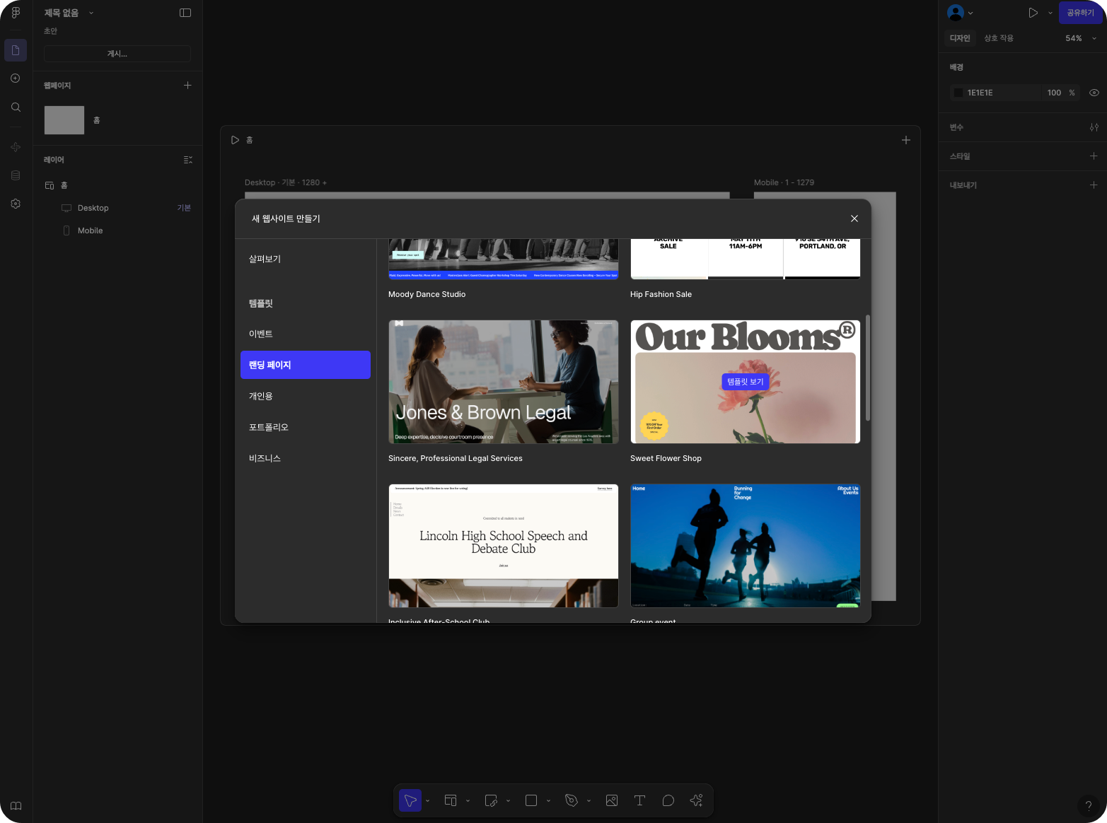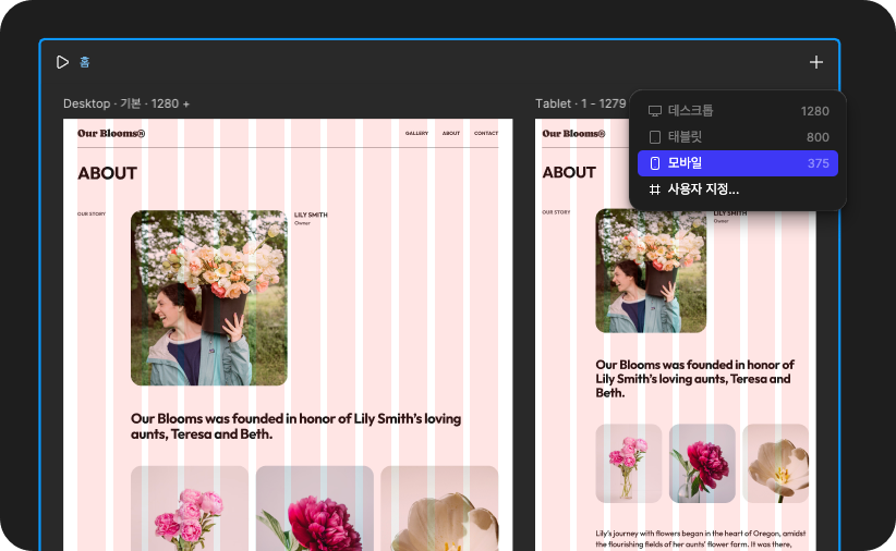 - 2. 오른쪽 '+' 버튼 눌러서 태블릿, 모바일 형태의 반응형 디자인 추가