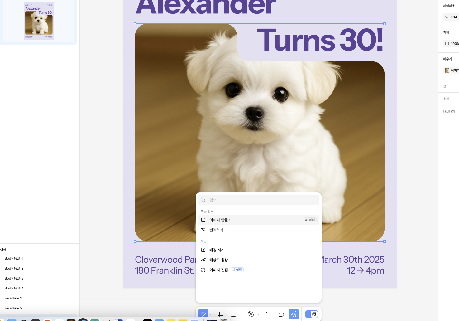 캔바코드나 cursor ai처럼 텍스트 프롬프트 작성으로 디자인을 자동생성 할 수 있는 기능이라고하는데 저는 아직 확인이 불가능합니다..ㅠ.ㅠ